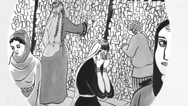 I was inspired by a place I visited in western Turkey called Meryem Ana (Mother Mary). The claim is that it’s where the Virgin Mary lived out her last days, and there’s a little chapel there with a constant line of pilgrims, and a wall of prayers. But there is also a much older keyhole-shaped pool (god, I hope I’m remembering that right), and my friend and I thought the place must have been a much earlier site of worship. So I saw it as a spot that has always been used for the prayers and petitions of women, throughout time, regardless of the deities who might be associated with it.