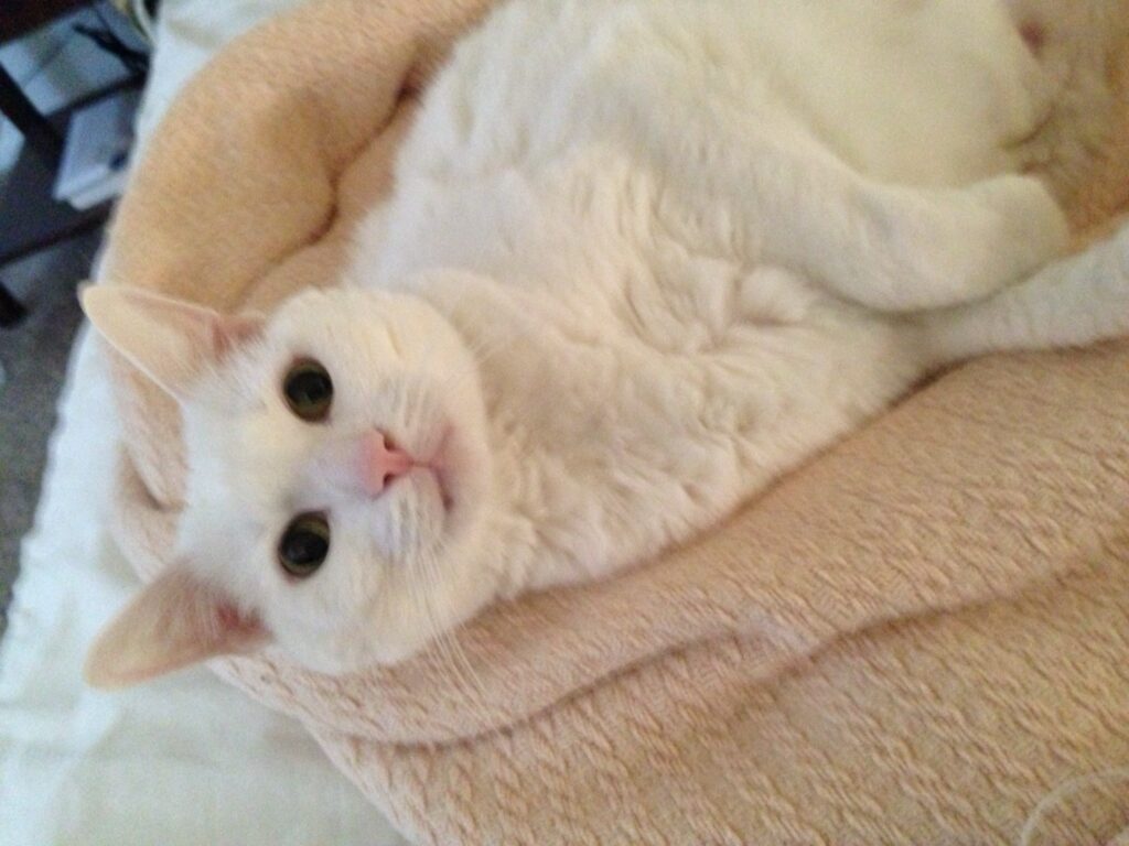 On the corner of the bed, my cat curled into her blanket. Large white prolific shedder, she’d been left at a shelter eight years prior. Now fifteen, she no longer trilled, hunting the occasional fly. But she still plotted—the kitchen chair, to the table, to the counter—to the crystalline vase and its dried rosebud. Her lids drooped over her peridot eyes, and her mouth formed its perfect scissor.
