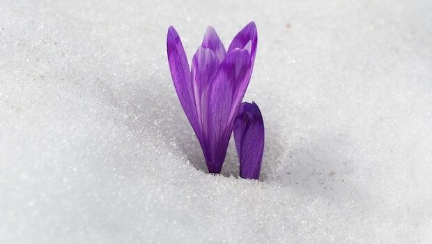 but I’ve never seen one rise in the wild as does the crocus that makes my cheeks flush with its ivory velvet in delicate contrast with the blackened slush kicked across it,